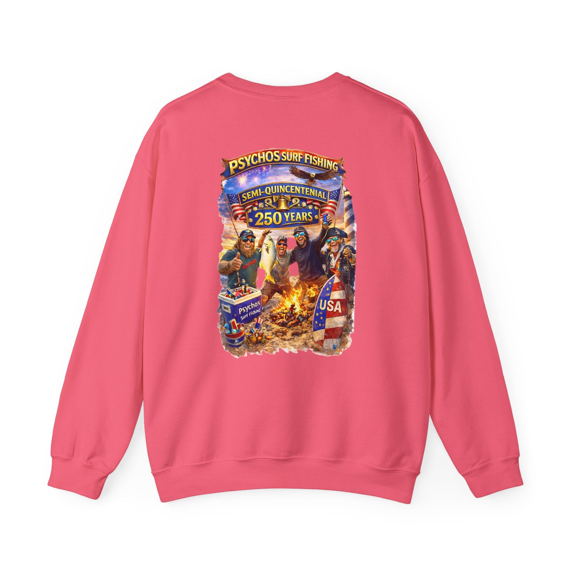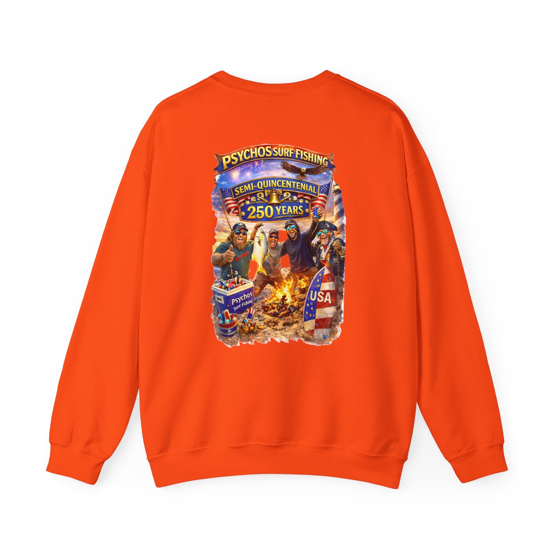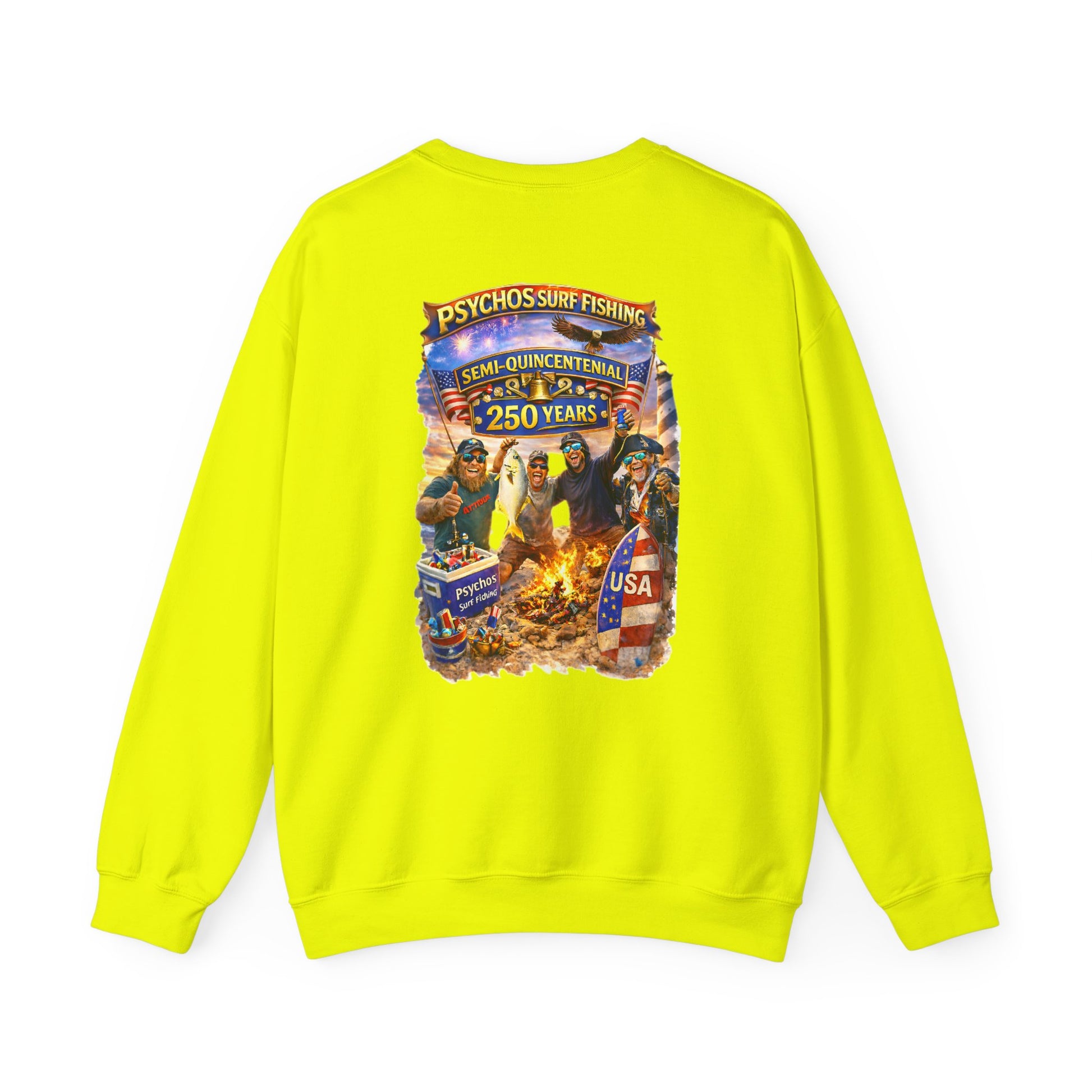 Semi-Quincennial 250 Years Crewneck Sweatshirt — Psychos Surf Fishing Retro USA Design
